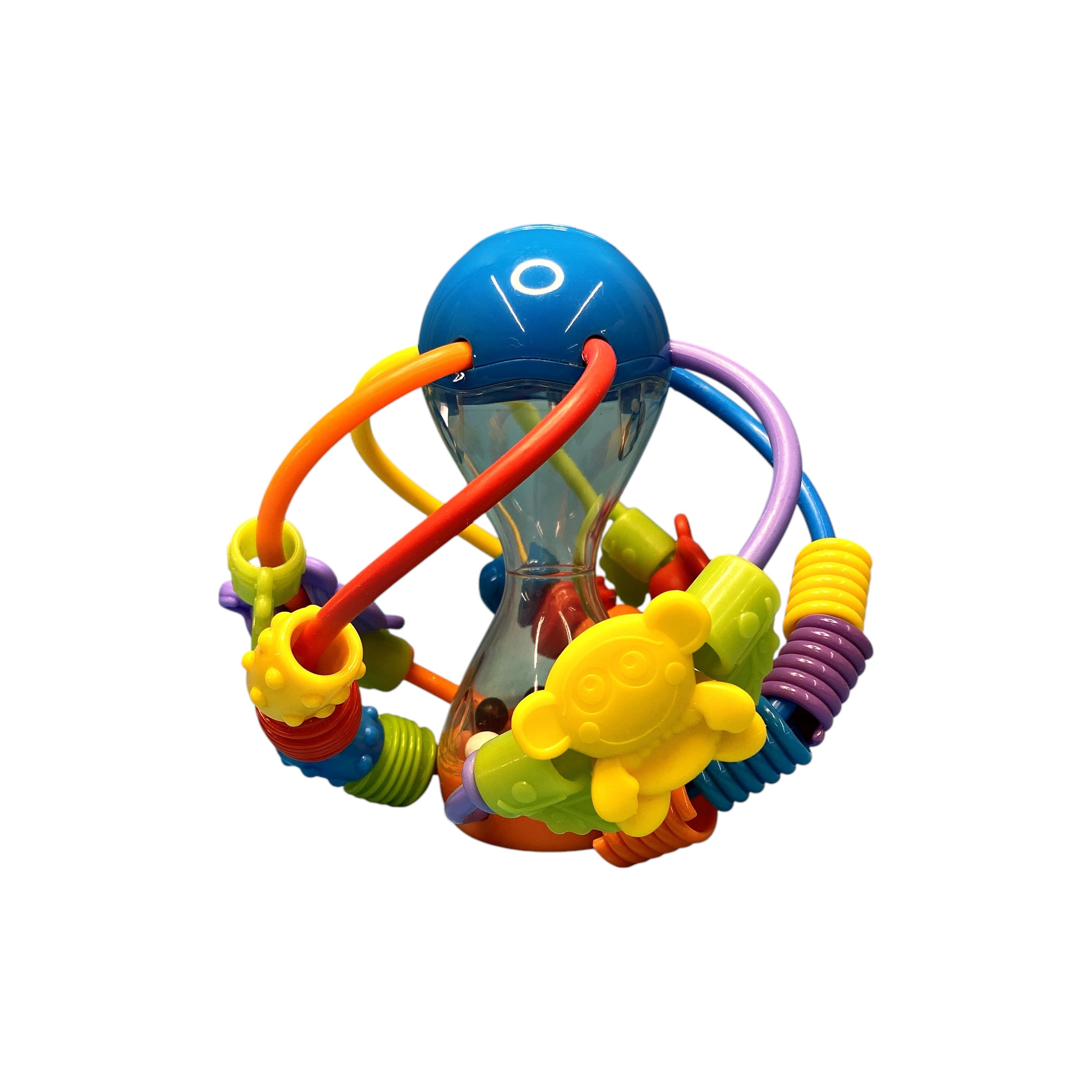 Cette balle contient des billes qui font du bruit et est entourée de tiges souples. Facile à saisir et à faire rouler, bébé peut ainsi la poursuivre à quatre pattes ou en trottinant derrière e...lle.