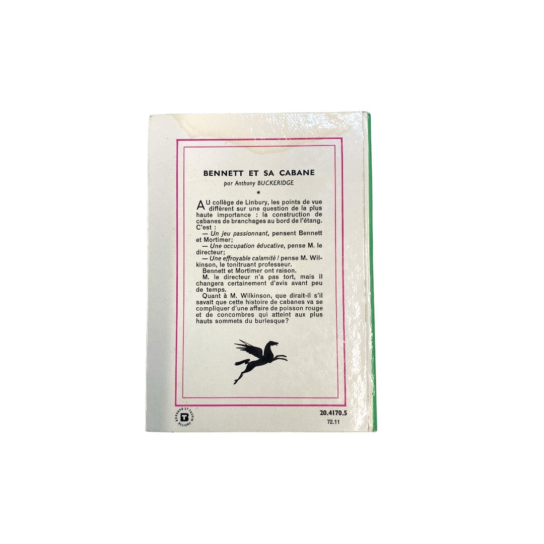 Auteur : Anthony Buckeridge Au collège de Linbury, les points de vue diffèrent sur une question de la plus haute importance : la construction de cabanes de branchages au bord de l'étang. C'e...st : - Un jeu passionnant, pensent Bennett et Mortimer ; - Une occupation éducative, pense M. Wilkinson, le tonitruant professeur. Bennett et Mortimer ont raison. M. le directeur n'a pas tort, mais il changera certainement d'avis avant peu de temps. Quant à M. Wilkinson, que dirait -il s'il savait que cette histoire de cabanes va se compliquer d'une affaire de poisson rouge et de concombres qui atteint aux plus hauts sommets du burlesque ?