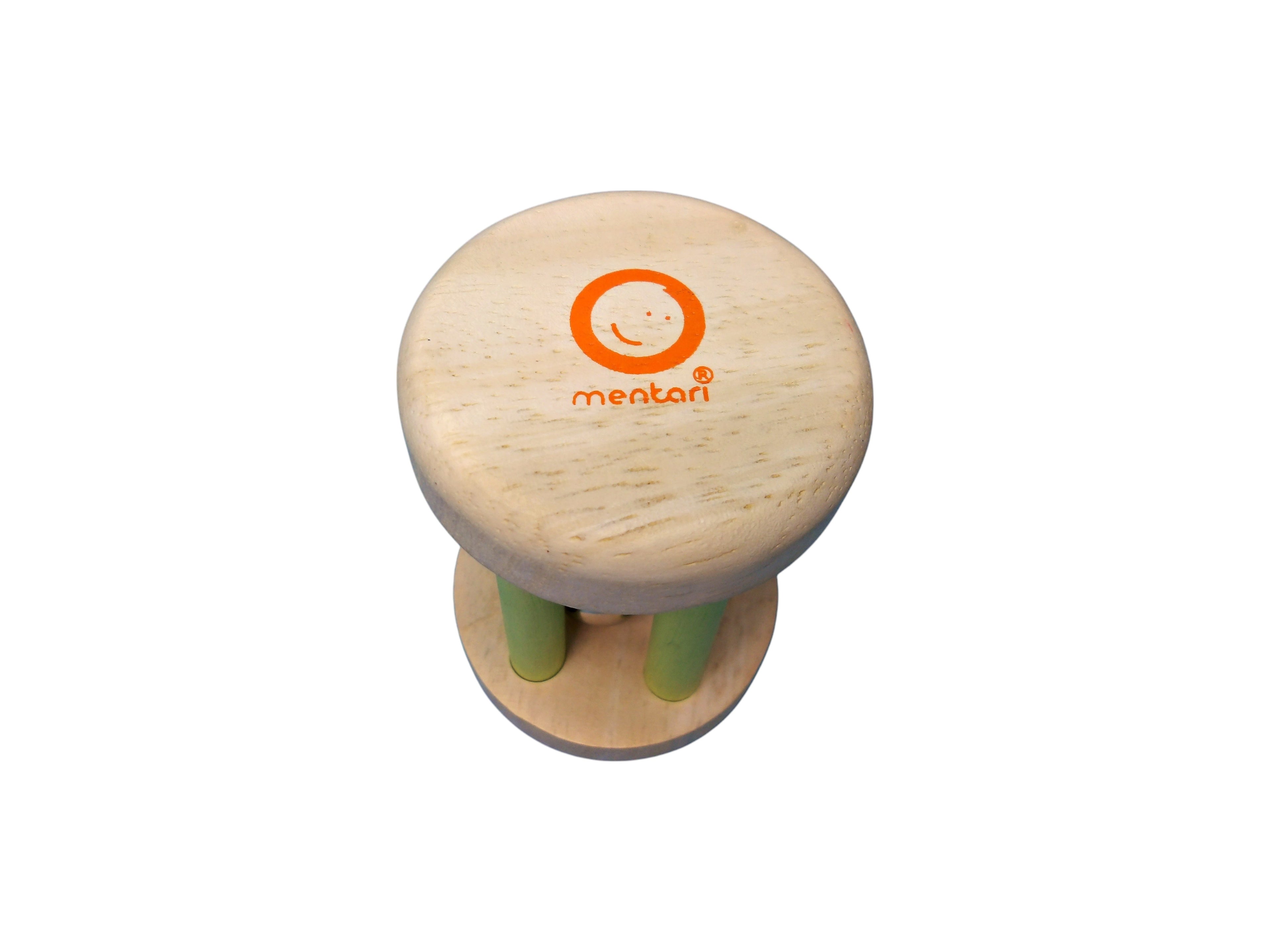 Ce hochet en bois dans un vert pastel tient parfaitement en main et développe la motricité fine de bébé.