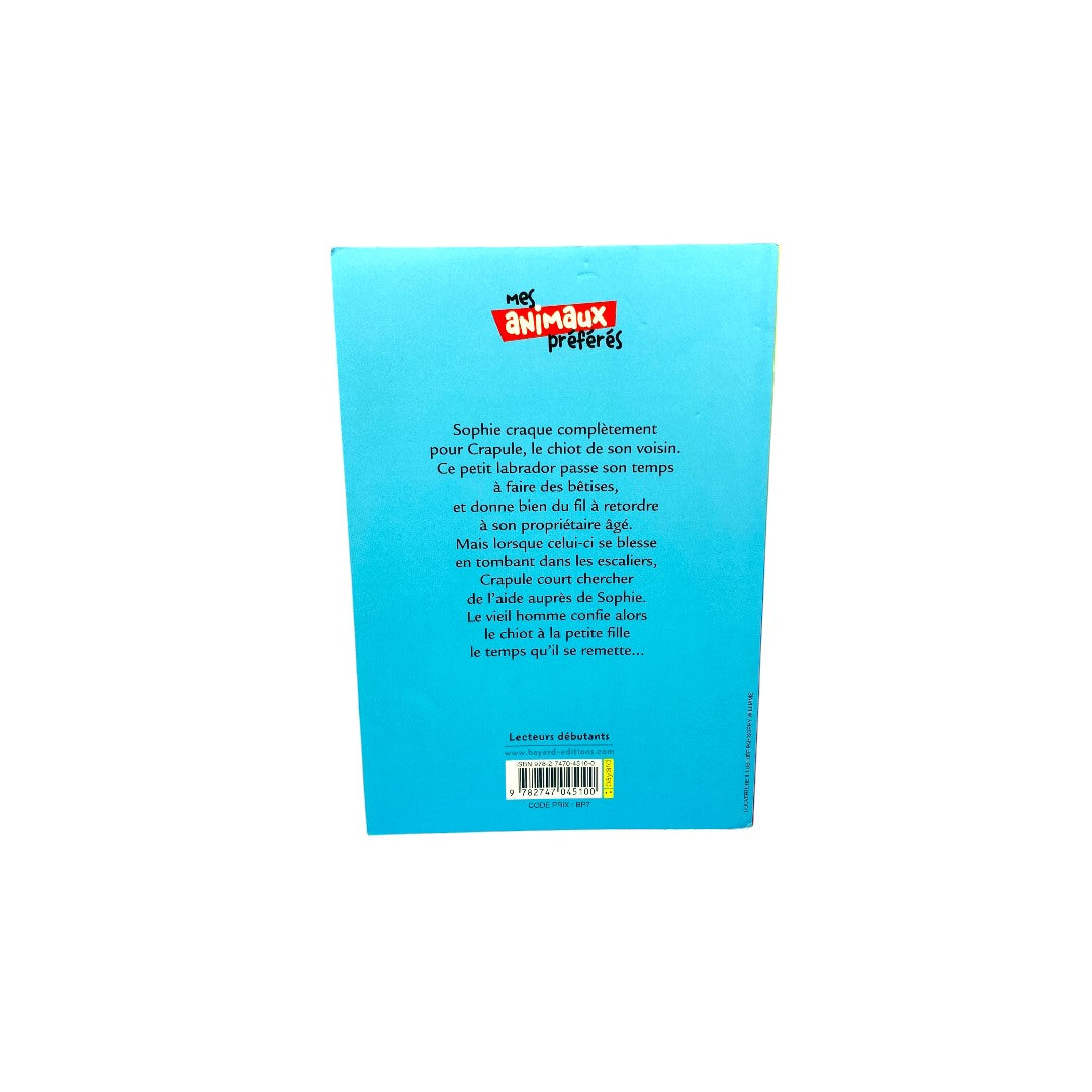 Auteur : Holly webb Sophie craque complètement pour Crapule, le chiot de son voisin. Ce petit labrador passe son temps à faire des bêtises, et donne bien du fil à retordre à son propriétaire... âgé. Mais lorsque celui-ci se blesse en tombant dans les escaliers, Crapule court chercher de l'aide auprès de Sophie. Le vieil homme confie alors le chiot à la petite fille le temps qu'il se remette... Référence : 9782747045100