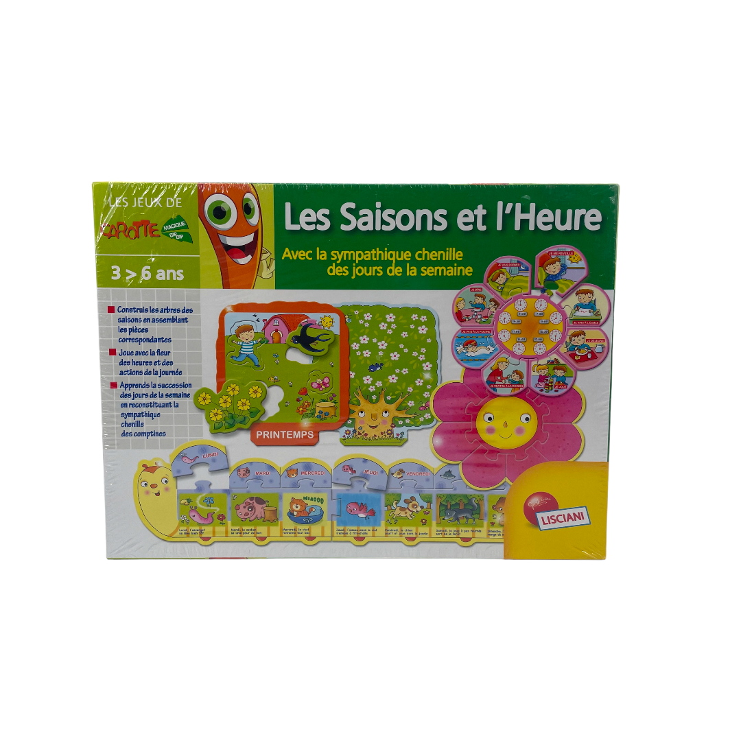 Ce jeu permet aux plus petits d'apprendre le concept du temps cyclique de manière spontanée et amusante. Ce jeu permet d'aborder le thème des saisons, de la semaine et de l'heure.