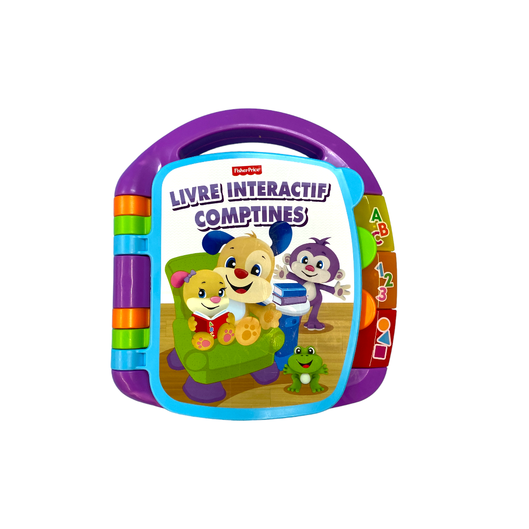 Livre interactif comptines est un livre contenant des chansons pour les bébés et des histoires adaptées pour les enfants à partir de 6 mois, avec trois boutons représentant des lettres, des ch...iffres et des formes. Une fois les deux piles LR06 (incluses) en place, bébé pourra appuyer sur les trois boutons allumés pour s'amuser durant des heures. Une poignée permet d'emporter ses comptines n'importe où et de les écouter à n'importe quel moment. Ce livre interactif initiera bébé aux chiffres, aux lettres et aux formes tout en écoutant de jolies comptines à rimes à chaque page tournée. C'est également un bon moyen de commencer l'apprentissage des premiers mots.