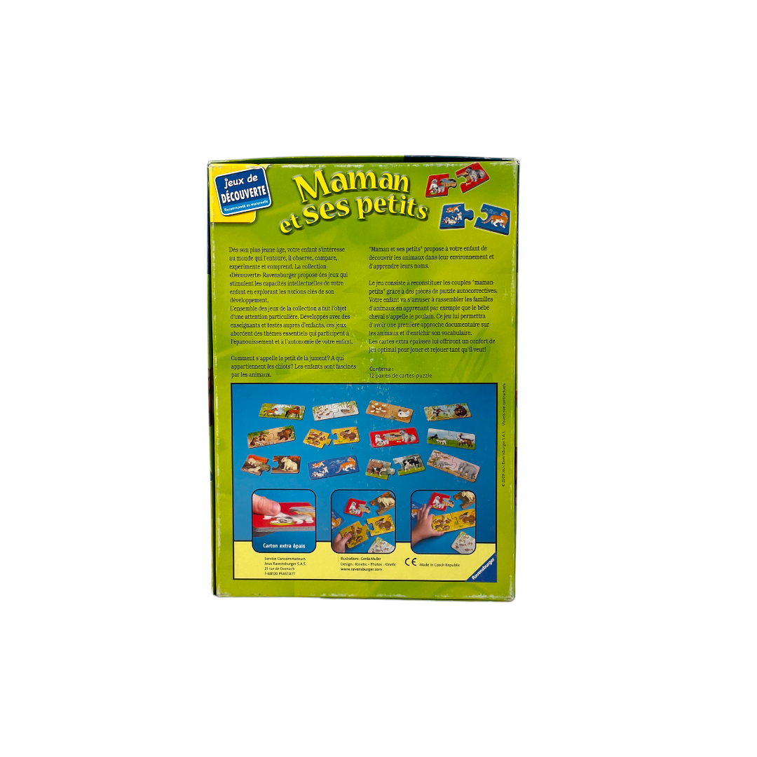 Jouer à associer les bébés avec leur maman ! Dans ce jeu ludique pour les plus petits, il y a 12 mères et leurs petits. Comme les bébés, ces petits s'éloignent parfois de leur mère, mais les l...arges pièces de puzzles autocorrectives aident l'enfant à réunir la famille !