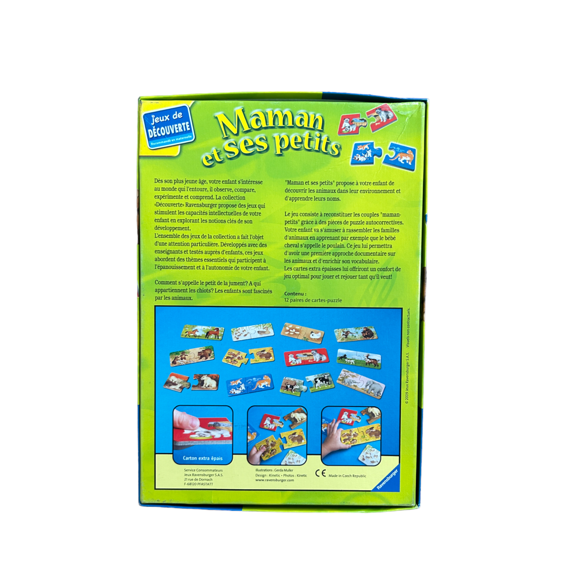 Comment s'appelle le petit de la jument ? À qui appartiennent les chiots ?Les enfants sont particulièrement fascinés par les animaux. Dans "Maman et ses Petits", ils ont une première rencontre... ludique avec ce thème. Les enfants découvrent quels petits vont avec quelle maman.Grâce à la découpe des cartes-puzzle, les enfants peuvent contrôler eux-mêmes s'ils ont correctement réunis les animaux.Ainsi, la recherche de paires d'images se fait de façon simple et ludique.