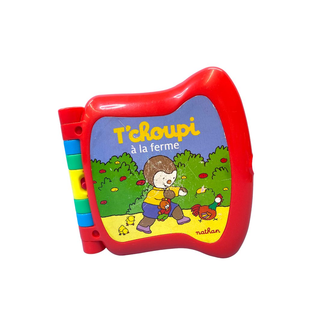 Un premier livre parlant et lumineux pour partir à la découverte des animaux de la ferme avec T'Choupi. L'enfant découvre les animaux, leur couleur, leur cri, leur maison.