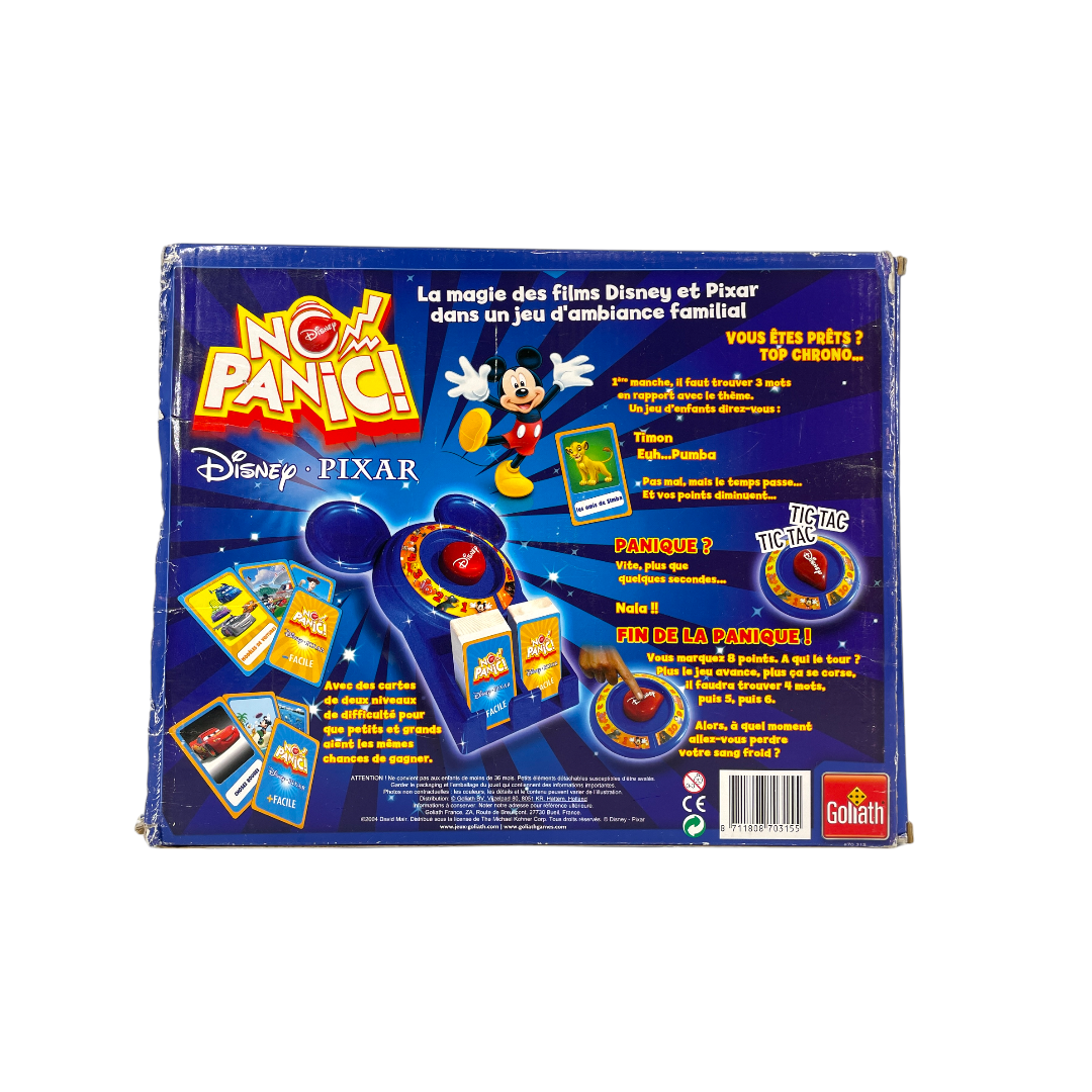 La version Disney du célèbre jeu No Panic. Un thème est donné, les cartes illustrées sont posées, la partie peut commencer ! Il faut être le plus rapide à retrouver les cartes correspondantes ...au thème ! Un jeu d'observation et de rapidité !