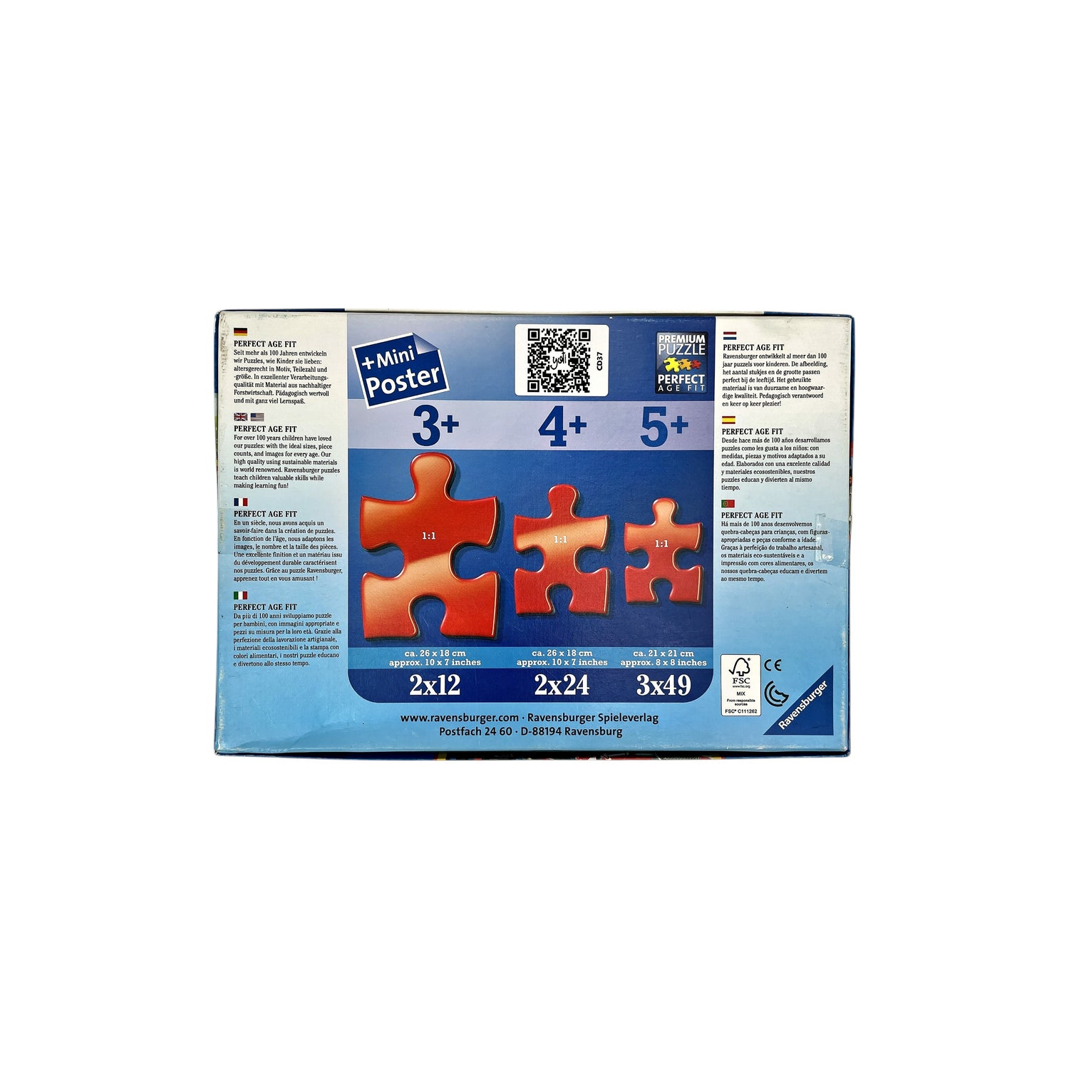 Ce coffret contient 2 puzzles de 12 pièces chacun, ainsi que des posters à taille réelle. Le nombre et la taille des pièces sont conçus pour permettre aux enfants dès 3 ans d'assembler leurs p...uzzles, dans l'univers de leurs héros préférés !