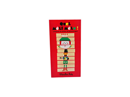 Jeu de puzzle comprenant 10 bâtons en bois, à 4 facettes illustrées représentant 2 filles et 2 garçons, chacun dans sa couleur vive avec son instrument de musique. L'enfant peut s'inspirer du ...poster déco pour recomposer son personnage ou en créer d'autres.