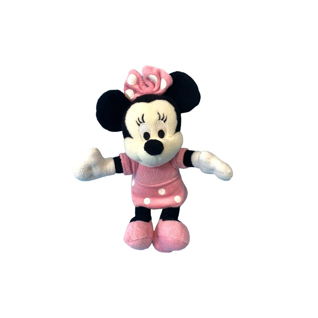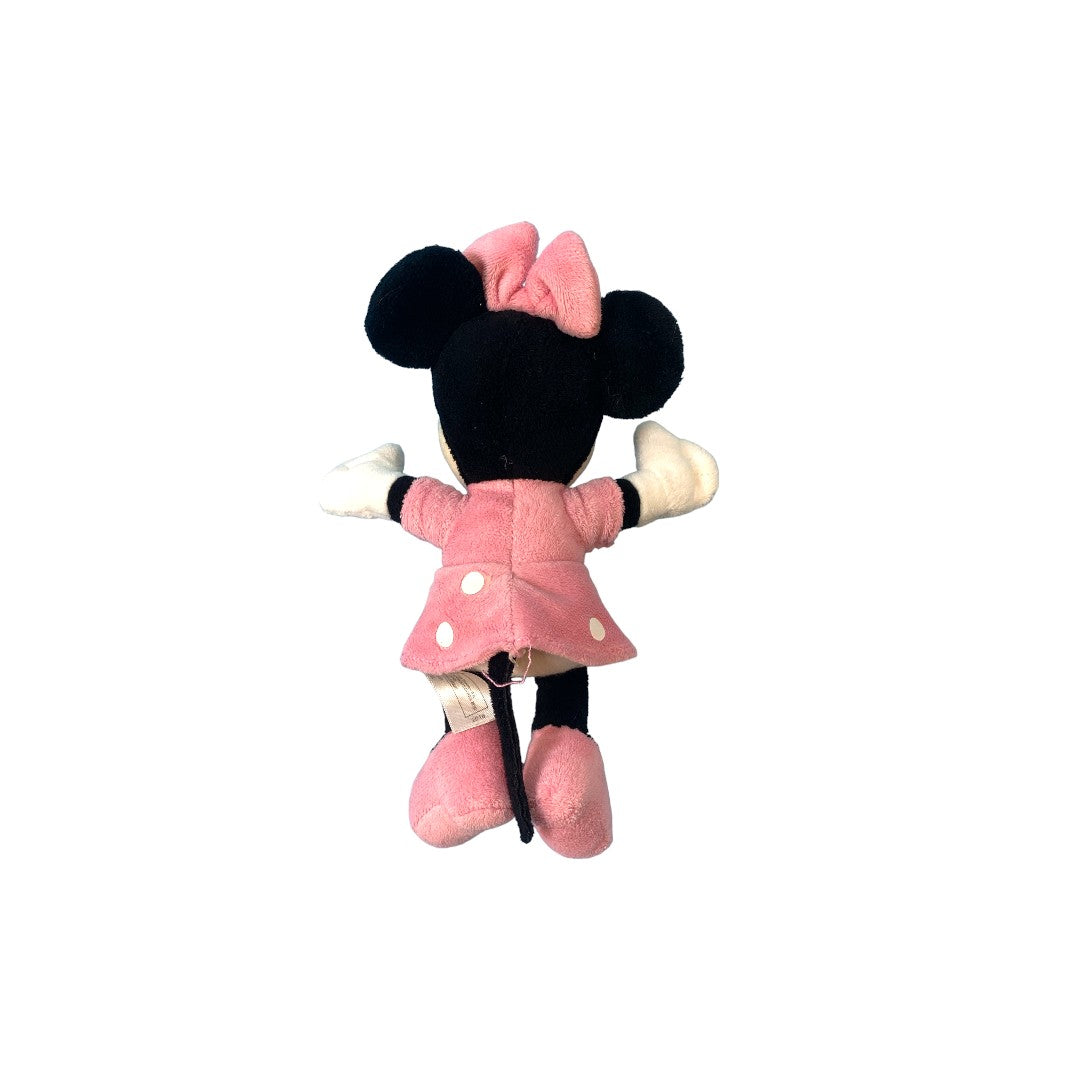 Peluche Minnie avec sa robe rose à pois blancs. La petite souris amie Mickey pourra apporter du réconfort à votre enfant.