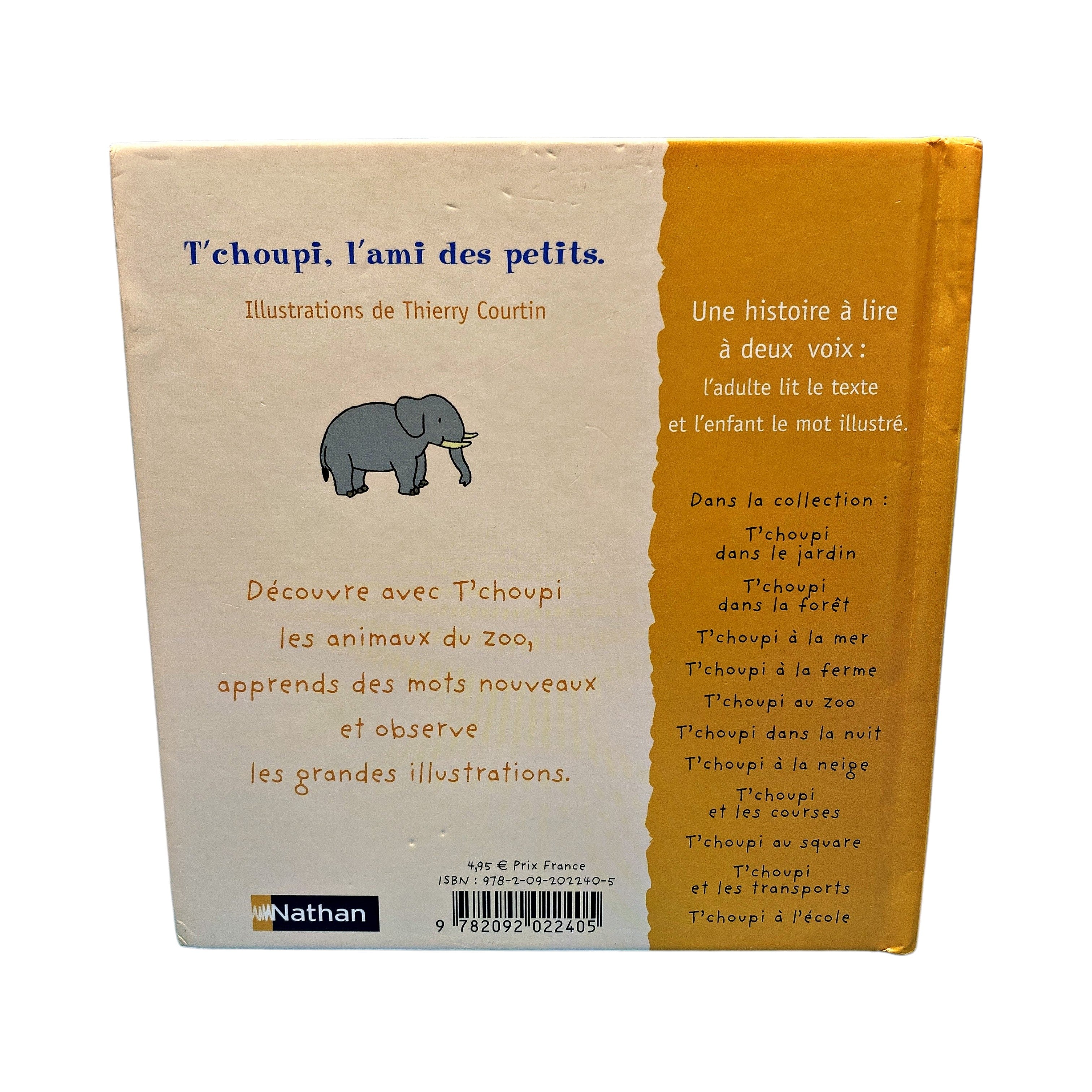 Auteur : Thierry Courtin Découvre avec T'choupi les animaux du zoo, apprends des mots nouveaux et observe les grandes illustrations. Référence : 9782092022405