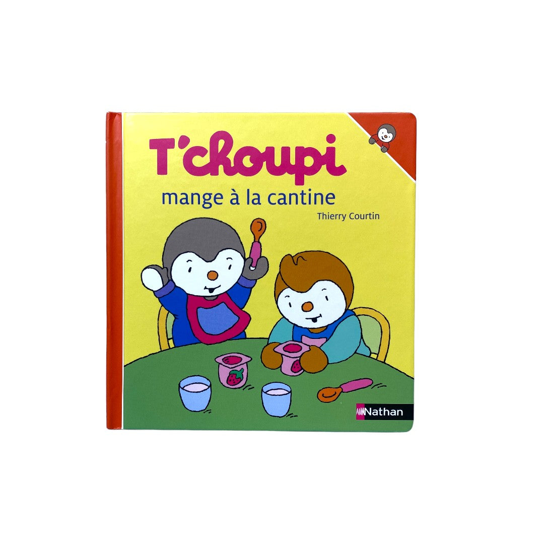 Auteur : Thierry Courtin C'est l'heure de manger : T'choupi et Pilou courent à la cantine mais… T'choupi fait la tête, il y a de la salade niçoise en entrée : beurk. Pilou, lui, déteste les h...aricots verts. Heureusement, pour le dessert, les deux copains sont contents : miam, des yaourts à la fraise ! Référence : 9782092549230