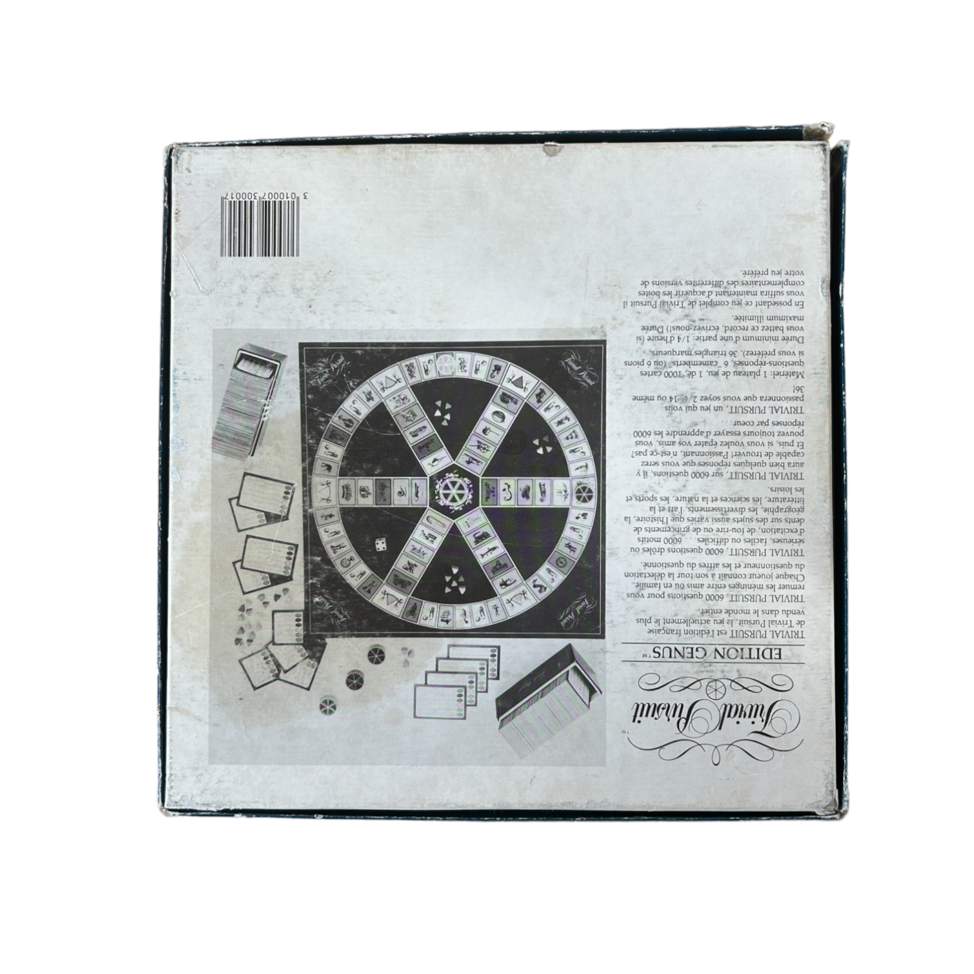 Trivial Pursuit (connu au Québec sous le nom de « Quelques arpents de pièges », mais désormais commercialisé sous son nom anglophone Trivial Pursuit) est un jeu de société dont la progression ...dépend de la capacité du joueur à répondre à des questions de culture générale, éventuellement dans un domaine plus précis pour des versions plus ciblées du jeu.