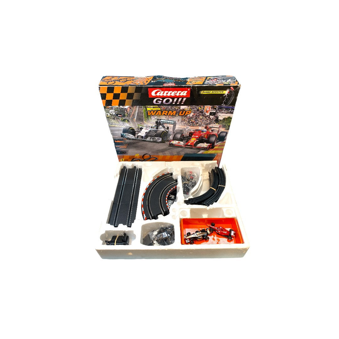 Circuit électrique d'une longueur de 5,30 mètres, comprenant : - 1 Ferrari F14 T "F. Alonso, N°14, de couleur rouge - 1 Mercedes-Benz F1 W05 Hybrid "L. Hamilton, N°44, de couleur gris - 2 man...ettes de manoeuvre "turbo booster" - 1 adaptateur de 14,8 volts La piste construite s'étend sur 5,3 m et fait battre plus vite le cœur de tous les pilotes de Carrera et de Formule 1. La particularité de cet itinéraire réside dans les boucles intégrées et une courbe raide. Le compteur de tours garantit que tout se passe bien et que la course peut se dérouler correctement. C'est ainsi que vous introduisez le duel Lewis Hamilton contre Fernando Alonso ou Mercedes contre Ferrari dans votre salon.